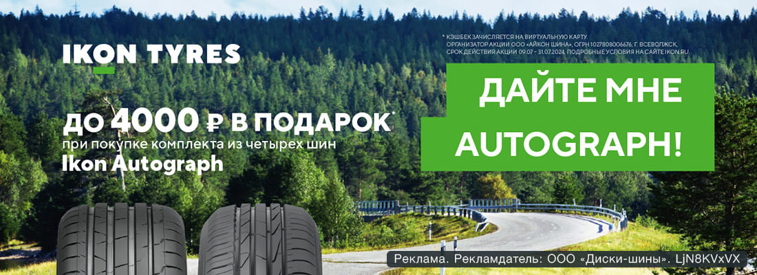 • Купите комплект шин из 4 шин линейки Ikon Autograph в период с 9.07.2024 до 31.07.2024 включительно;
